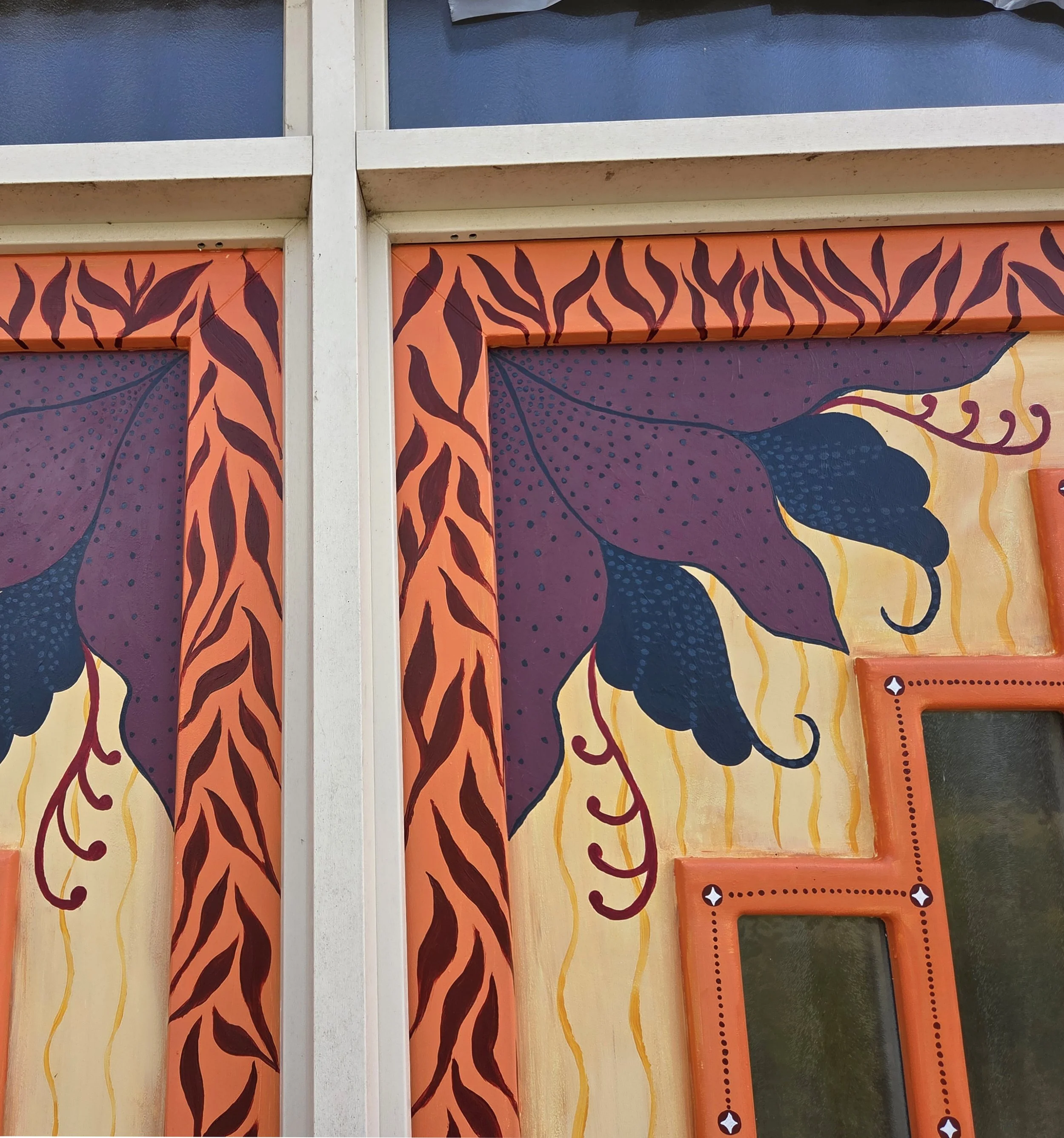 Een schildering voor mijn favoriete klanten: mijn ouders! Zij wilde graag een schildering om onze Indonesische roots te vieren, waarbij ik snel op een ontwerp kwam geïnspireerd door batik. En gezien oranje favoriet in huis is, was het kleurenpalet snel gemaakt.